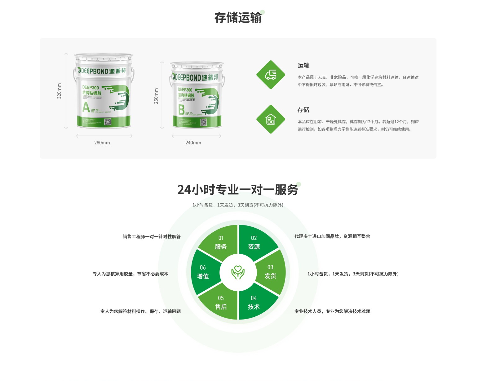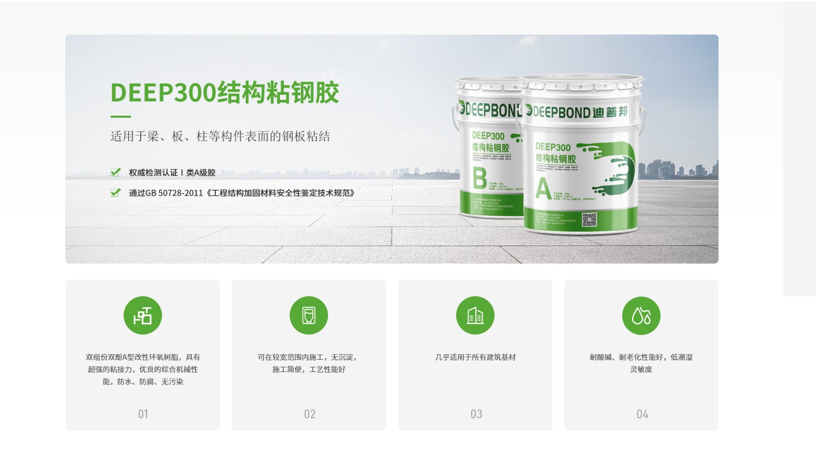 環(huán)氧類雙組份產(chǎn)品,具有粘接力強、常溫固化。在鋼板、混凝土的自粘和互粘中有優(yōu)異的耐老化、抗沖擊性能,剪切度高,適用于多種建筑加固抗震。