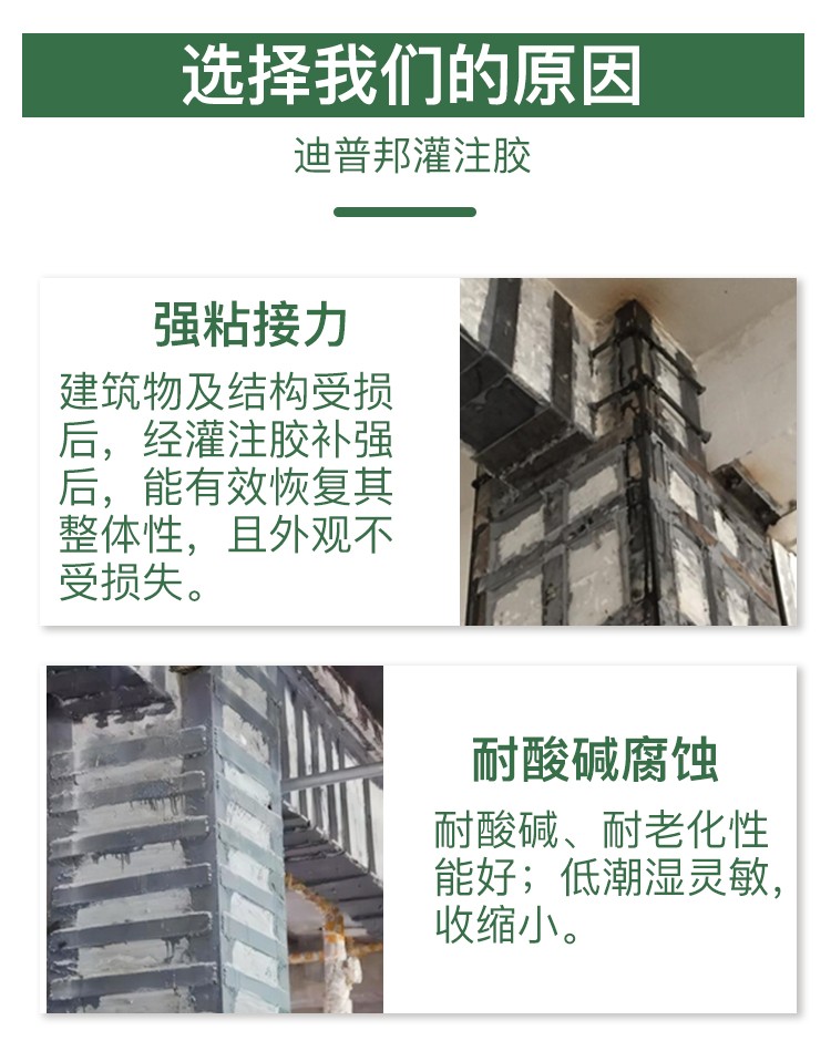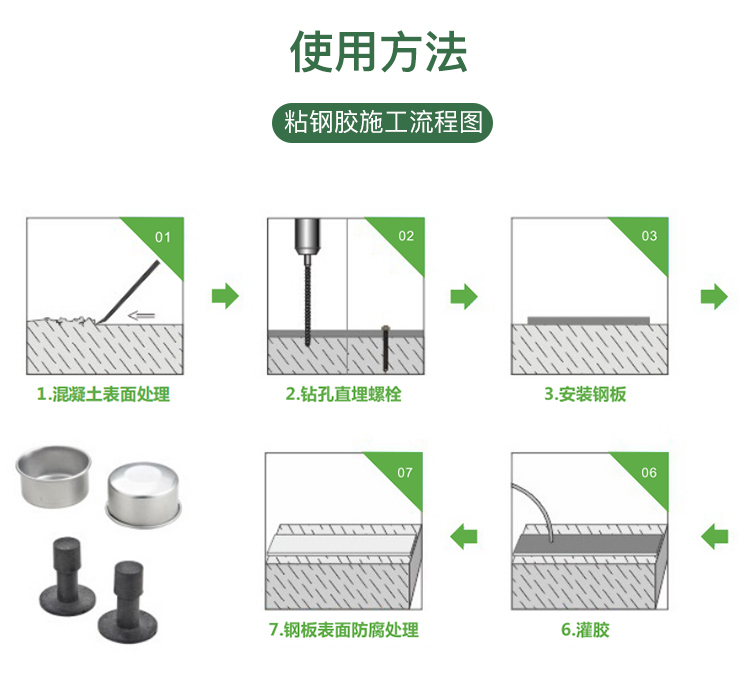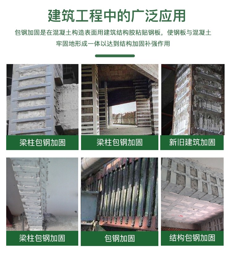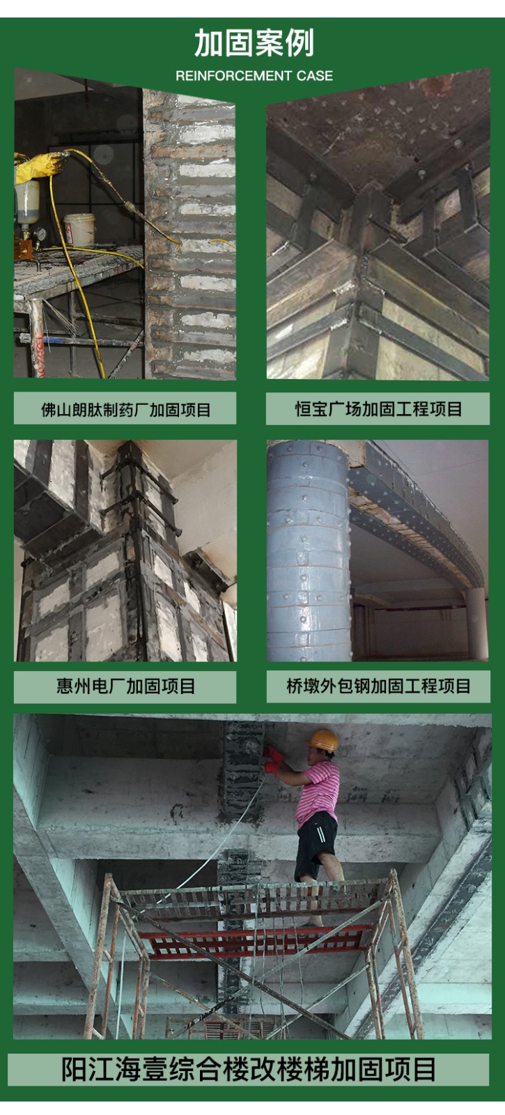 灌注粘鋼膠膠為雙組分改性環(huán)氧樹脂類低粘度液狀的膠粘劑,其粘度低、配比寬松、放熱少、適用期長(zhǎng),漿液灌注工藝簡(jiǎn)便。